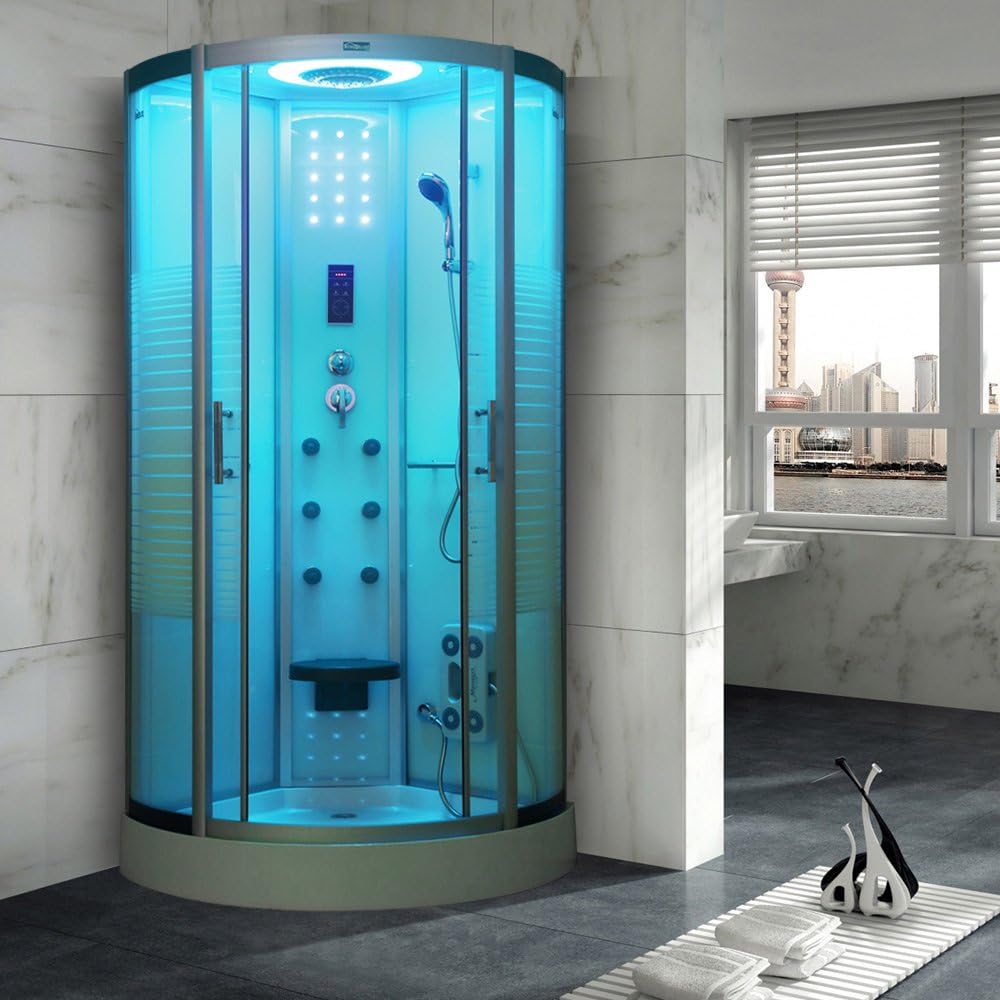 Virpol Home Bathtub Spa Shower Cabin Enclosure 800x800mm With Steam 7 Color Led Lights System 6 Hydro Massage Body Jets White Amazon Co Uk Kitchen Home